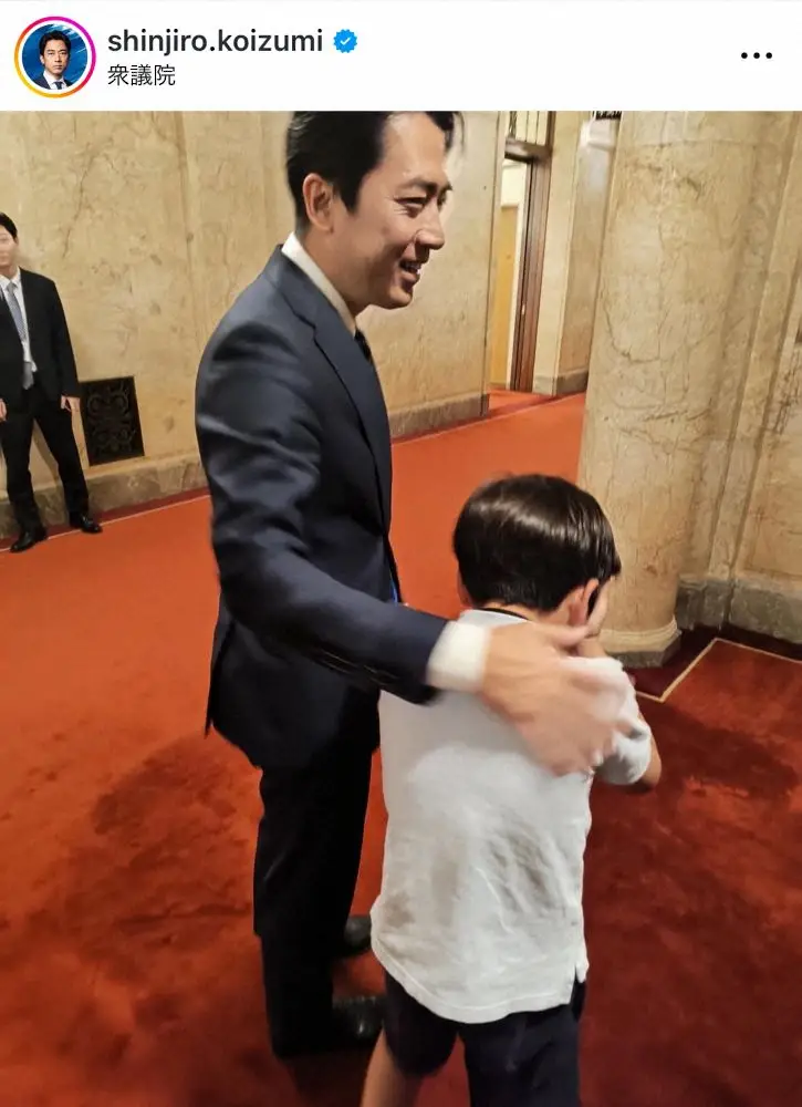 「同僚議員から“小泉さんのファンの男の子が国会見学に来るから顔出してもらえないか”と声をかけられ会いに行きました」と書き出した進次郎氏。子供の肩に手を添える写真など複数枚投稿し「“こんにちは”と声をかけ握手をしていると…だんだん目に涙が溢れてきてポロポロ泣いてしまいました」と状況を説明した。