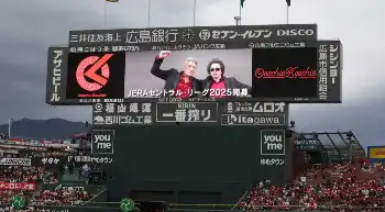 2人の登場に、ファンのカープグッズで真っ赤に染まった会場からどよめきの声が上がった。「開幕にふさわしい熱戦を期待しています。セントラルリーグ、開幕です!」との2人の呼びかけに観客は大興奮。広島選手の入場とともに曲が流れ、スタンドからの拍手や歓声とともにシーズンの開幕を彩った。