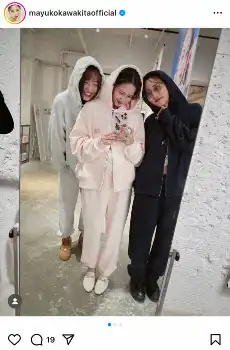 モデルでタレントの河北麻友子(33)が29日、自身のインスタグラムを更新。日本テレビ「世界の果てまでイッテQ!」で“出川ガール”として共演する堀田茜(32)、横田真悠(25)とのスリーショットを公開した。