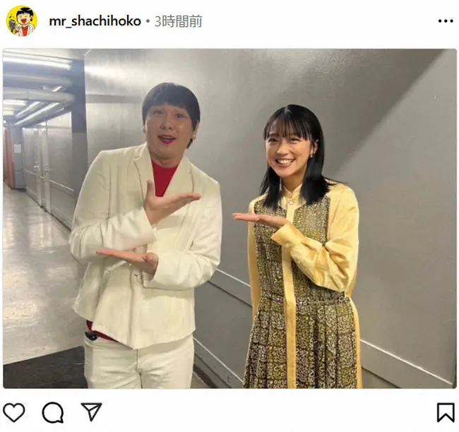 Mr.シャチホコは「お昼は名古屋でとある企業様の周年パーティーでのものまねショーでした そして!!た、た、た、竹内由恵さんとお会い出来てもう感激×1億ぅぅぅううう」とつづり、元テレビ朝日でフリーアナウンサー・竹内由恵との2ショットをアップ。