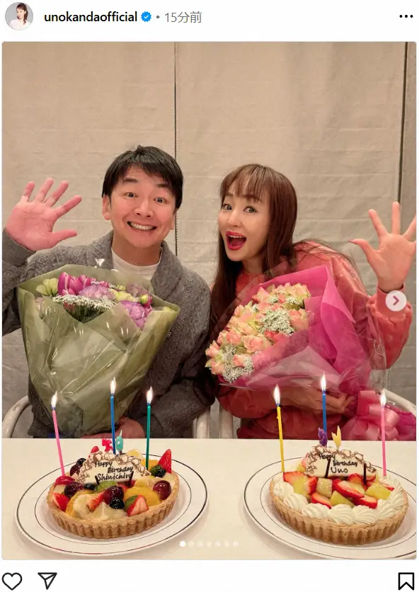 神田は「家族とお誕生日会 自分もお祝いしてもらいましたが私も弟 伸一郎 と可愛いお嫁ちゃん のお祝いをして『おめでとう 』の言葉が行き来し合う合同バースデーでした」とつづり、弟でお笑いコンビ「ハマカーン」の神田伸一郎との2ショットをアップ。「うの50歳!伸一郎48歳!となかなかの年齢になった私達姉弟。伸一郎にはお嫁ちゃんと一緒に48あわせな48歳を過ごしてもらいたいです」と願いを込めた。