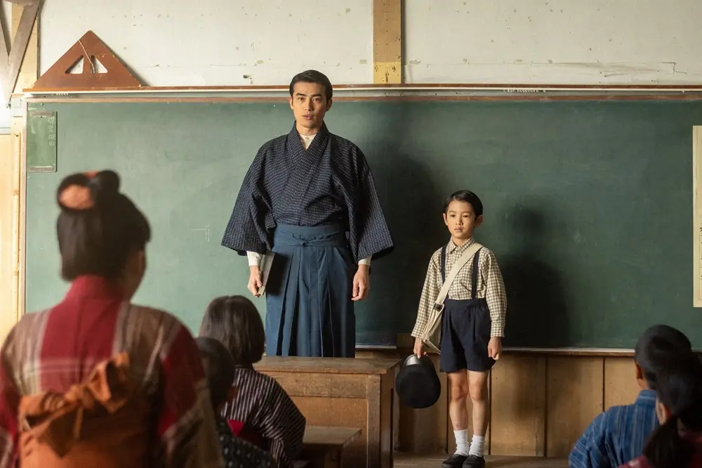 連続テレビ小説「あんぱん」第1話。転校してきた柳井嵩(木村優来・奥右)(C)NHK