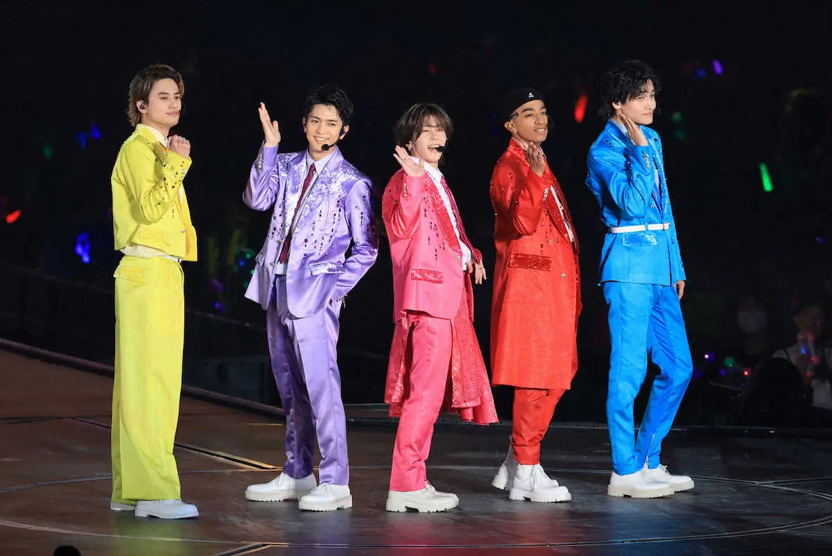 パフォーマンスするAぇ! groupの(左から)佐野晶哉、草間リチャード敬太、末澤誠也、正門良規、小島健(撮影・松永 柊斗) Photo by スポニチ Aぇ!group 6月18日に3枚目シングル「Chameleon」の発売を発表 ギャラリーで見る この記事のフォト 2025年03月31日の画像一覧 もっと見る 2025年03月31日の画像をもっと見る