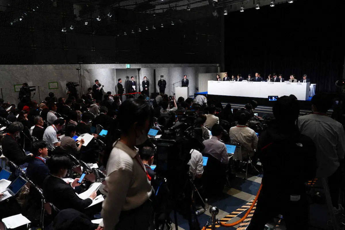 <フジテレビ記者会見・第三者調査報告会見>第三者調査報告会見する竹内朗委員長ら(中央)ら(撮影・西尾 大助) Photo by スポニチ フジ「重大なハラスメント事案」公表 BS「プライムニュース」キャスター… ギャラリーで見る この記事のフォト 2025年03月31日の画像一覧 もっと見る 2025年03月31日の画像をもっと見る