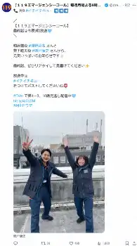 午後7時にドラマ公式Xが更新され、「【119 エマージェンシーコール】最終話は今夜9時放送」と最終回を宣伝。「粕原雪役#清野菜名さんと兼下睦夫役#瀬戸康史さんから、元気いっぱいのお知らせです」とつづり、清野と瀬戸のオフショットを掲載。「最終話、ぜひリアタイして見届けてください」と呼びかけた。