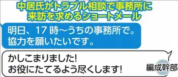 中居氏 言葉巧みに“2人きり”狙う 明らかになったショートメールのやりとり