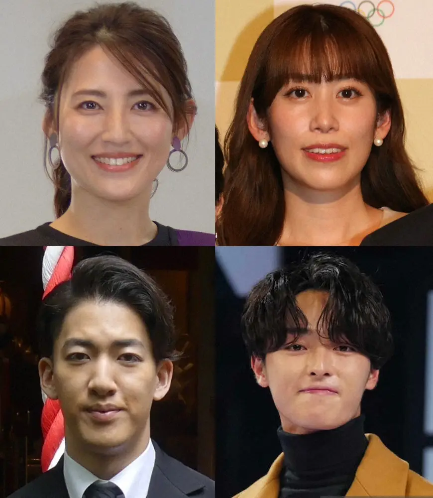 (左上から時計回りに)福田彩乃、中川安奈アナウンサー、谷原七音、尾上右近