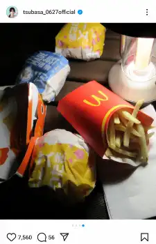 ハッシュタグには「ootd(=今日のコーデ)」「マック」と添え、「期間限定なんて言わないでくれ。」とファストフード大手マクドナルドの“チーズてりたま”が期間限定でしか手に入らないことを嘆くコメントも投稿。