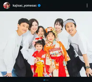 “カジサック”ことお笑いコンビ「キングコング」の梶原雄太(44)と妻の“ヨメサック”のインスタグラムが6日に更新され、仲良し家族ショットが公開された。