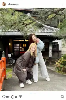 シルク「昭和レトロなお宿に」隣でほほえむ金髪女性にファンびっくり「わ!遙さん」「久々ですね」