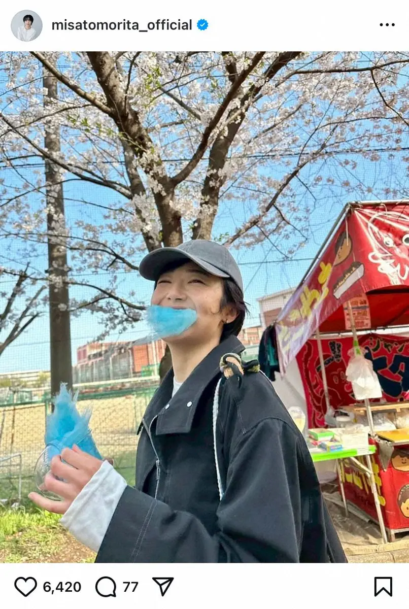 森田望智 花見ショットで頬張った綿菓子に注目集まる「すごい色」「ひげみたい」「モザイク…」