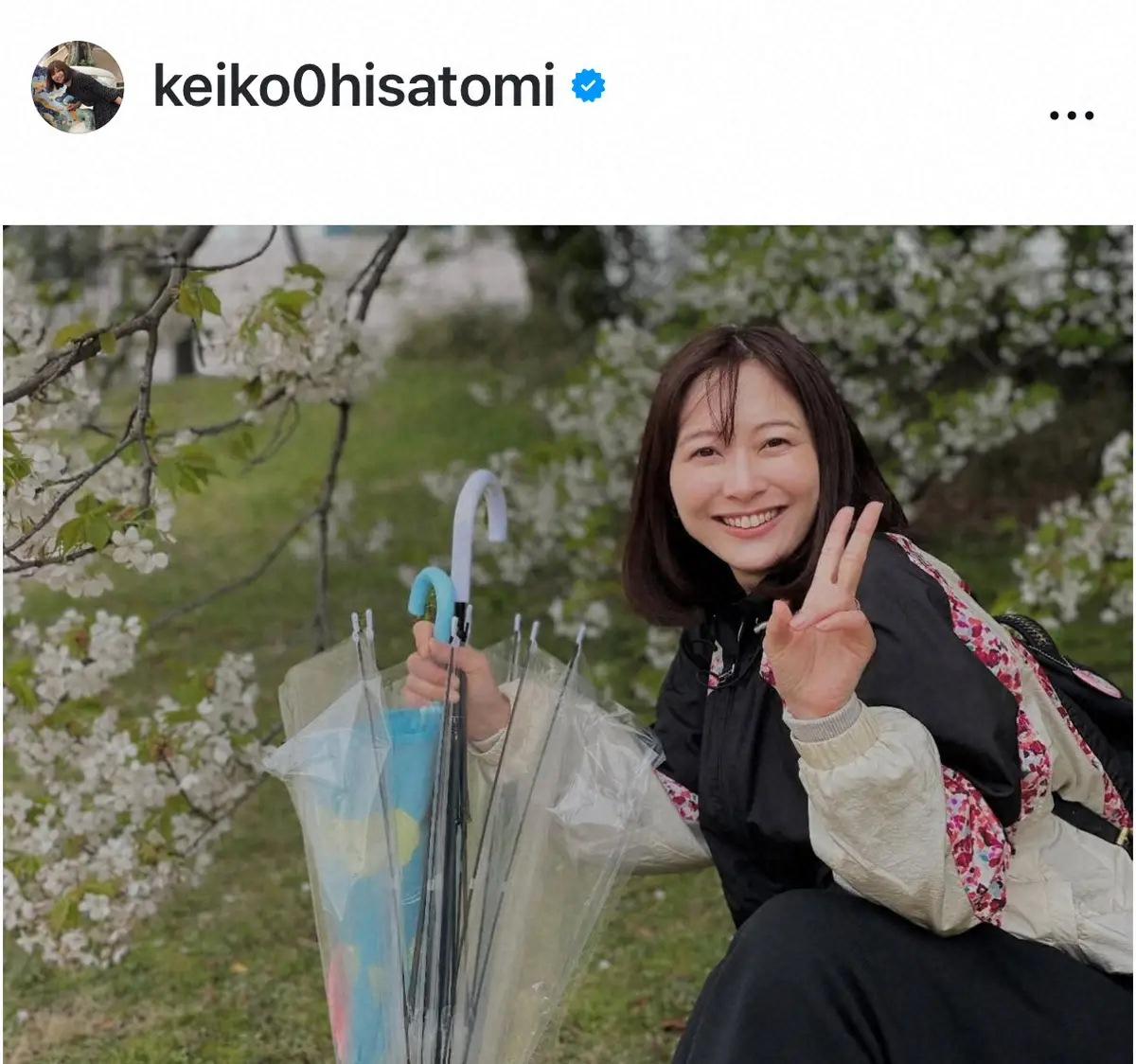 「手を繋いでおしゃべりしながら春を楽しんで。 一緒に過ごしてくれる時間を大切にしたいです」と久冨アナ。「最後の一枚は息子が撮ってくれました」とつづり、長男撮影の自身のショットもアップした。