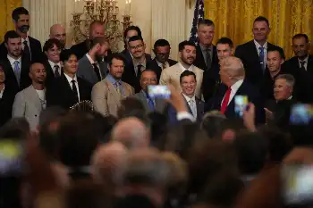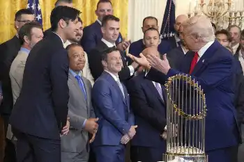昨季、世界一に輝いたドジャース軍団はロバーツ監督をはじめ、大谷や山本の日本選手も参加した。レッドソックス在籍時の18年に世界一に輝き、翌年の訪問を辞退していたベッツも今回はチームとともに参加した一方、昨秋のワールドシリーズMVPに輝いたフリーマンは右足首捻挫のため負傷者リスト(IL)入りしているため、欠席。スネル、コンフォート、スコット、佐々木の今季加入組も不参加だった。