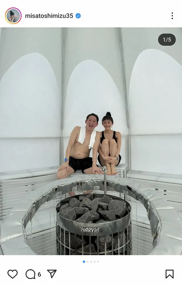 お笑いコンビ「サバンナ」の高橋茂雄(49)の妻でタレントの清水みさと(33)が8日、自身のインスタグラムを更新。大阪・関西万博のサウナを満喫する夫婦ショットを披露した。