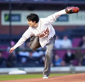 俳優の渡辺圭祐が始球式 大きく外れるボール球に「悔しい!またリベンジに来ます!」