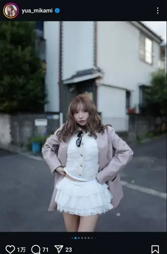 SKE48の元メンバーでタレントの三上悠亜(31)が9日までに自身のインスタグラムを更新。“オキニ”のミニスカコーデ&バッグを披露した。