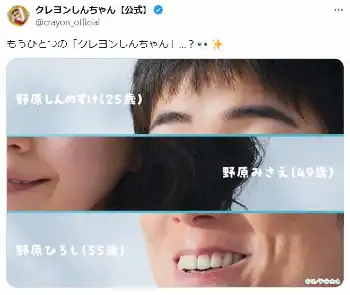 発表に先立ち、今月3日には同アニメ公式SNSが“実写化を匂わせる”画像を投稿した。顔の一部の写真とともに「野原しんのすけ(25歳)」「野原みさえ(49歳)」「野原ひろし(55歳)」と記されており、ファンの間でひろし、たいぞーさん?」などと考察で盛り上がっていた。