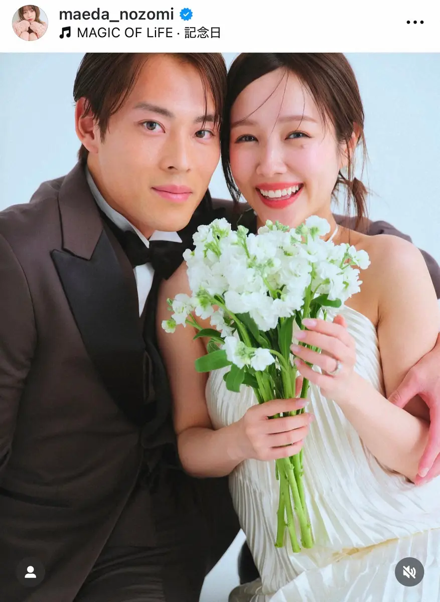 前田はインスタグラムで「心配性で考えすぎてしまう私を、自然と前向きな気持ちにさせてくれる彼とならこの先何があっても互いに支え合い、どんな困難も乗り越えていけると確信し、結婚を決意いたしました」と明かした。渡邊は「いつも笑顔を絶やさず人想いで、優しさ溢れるそんな彼女と一生を共にしたいと思いました」と前田の人柄に触れた。