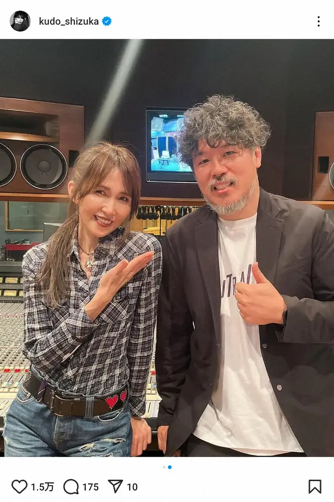 歌手の工藤静香(54)が9日、自身のインスタグラムを更新。人気ミュージシャンとの2ショット写真を披露した。