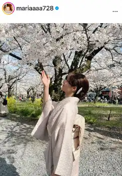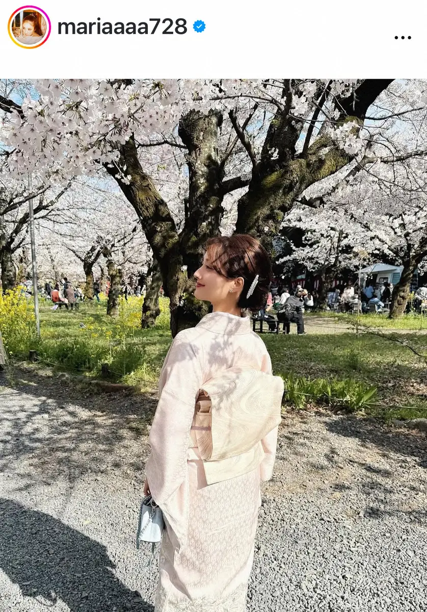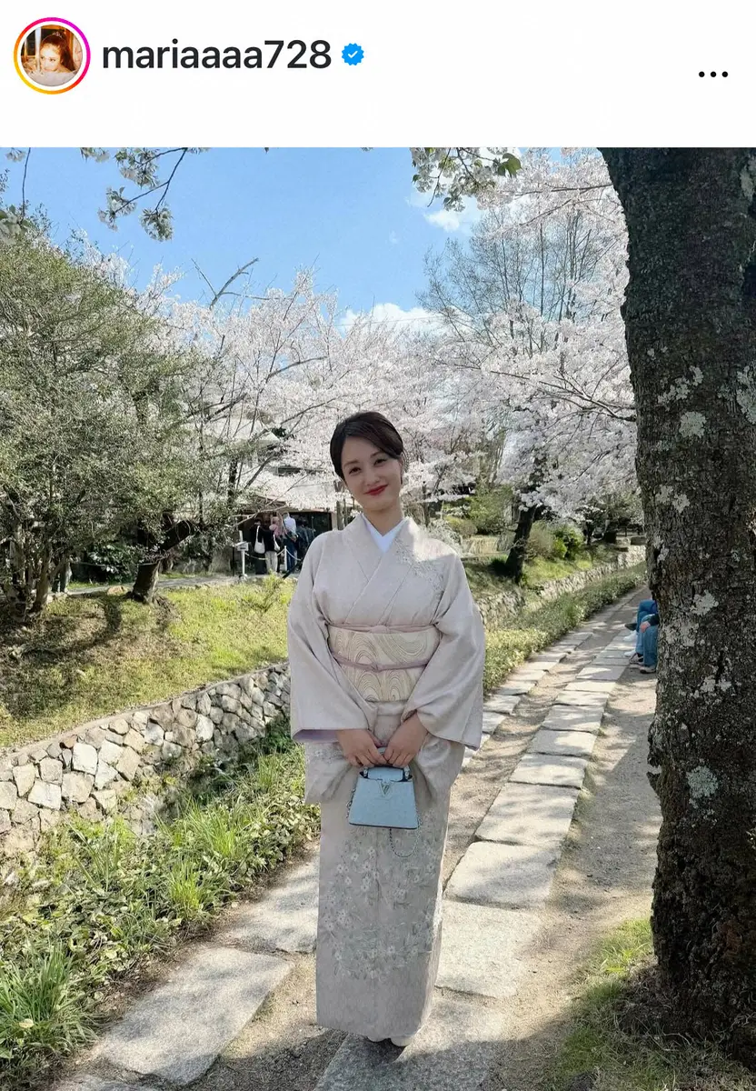 【画像・写真】谷まりあ 京都でお花見…和服姿ショットにファンうっとり「どっちも綺麗すぎ」「銀座のママ感すごい」