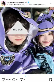 「口元そっくり」益若つばさ 高校2年長男とサッカー観戦、仲良し2ショに反響「似てる」「可愛すぎる」