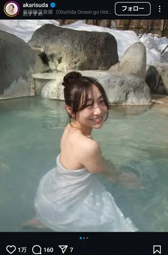 元SKE48でタレントの須田亜香里(33)が11日までに自身のインスタグラムを更新。雪見風呂入浴ショットを公開した。