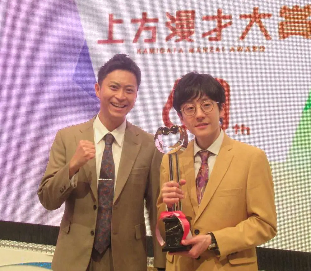 「第60回上方漫才大賞」の奨励賞を受賞したのが芸歴17年目のヘンダーソン。初のタイトル奪取に「昨年、悔しい思いをしたんで、うれしい」と中村フー(37)は舞台上で涙。思わず賞金150万円の入った祝儀袋で涙を拭った。