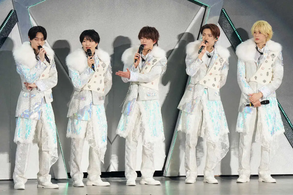 囲み取材に応じるACEes(左から)作間龍斗、那須雄登、浮所飛貴、深田竜生、佐藤龍我(撮影・大城 有生希) Photo by スポニチ ACEes「時代をつくるぞ!」 2月再編で結成 デビューへ5人のPROLOGUE ギャラリーで見る この記事のフォト 2025年04月13日の画像一覧 もっと見る 2025年04月13日の画像をもっと見る