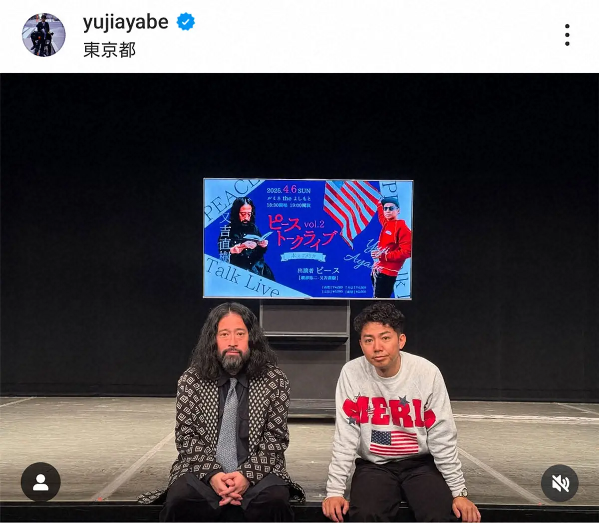 お笑いコンビ「ピース」の綾部祐二(47)が13日までに自身のインスタグラムを更新。コンビでのトークライブの告知を行った。