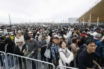 午後には風雨が来場者を苦しめた。気温が下がり横殴りの雨の中、長時間待たされた人たちは体を震わせた。雨宿りのため大屋根リングの下に逃げ込んだが、同じ考えの人でここも大混雑。しかも雨が吹き込むため「大屋根」は機能しなかった。午後2時過ぎには帰宅する人が急増。出口に大量の人が押し寄せ、流れが滞り、夢洲駅も一時入場を規制。駅に着くまで約2時間かかった人もいた。