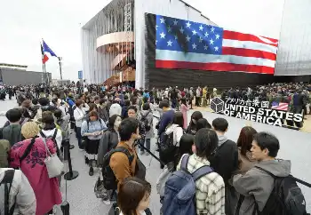 米国館は予約不要で先着順。会場に入ったものの、パビリオンの予約が取れない人が並んだようだ。大リーグ・ドジャースの大谷翔平が展示映像に登場することも話題で、万博会場でもその人気を実感した。