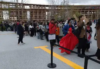 13:30ごろ フランス館が混雑と関係者セレモニーの影響で入館受け入れを停止。米国館も混雑で入館停止