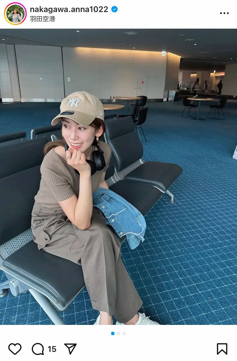 NHKを3月末で退局しホリプロ入りした中川安奈アナウンサー(31)が14日、自身のインスタグラムを公開。フリー転向後、初出張での空港ファッションを披露した。