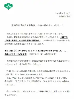 また、中止となった公演の払い戻し方法についても、決定次第「松竹公式サイト」「歌舞伎美人」でアナウンスするとした。