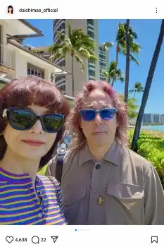 髪色もオソロ!? 大地真央&12歳年下夫の旅先ショットに「ハワイにも愛が」「いつもラブラブ」の声