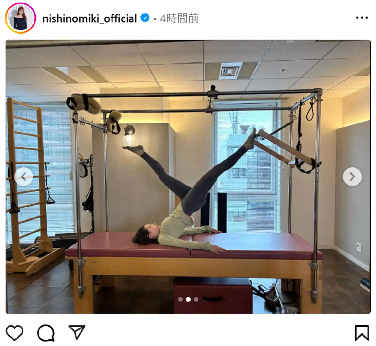 元AKB48でタレントの西野未姫(26)が14日、自身のインスタグラムを更新。ピラティスに励む姿を公開した。