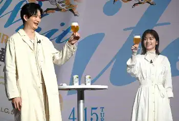岡田将生「憧れだった」ビールCM初出演に乾杯~ キリンビール新商品発表会 こちらも初!小芝風花と喜び
