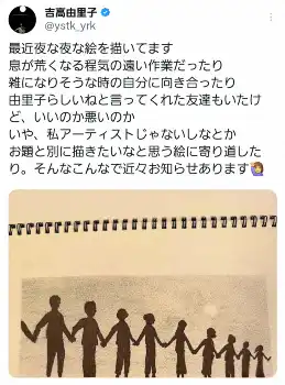 吉高は続けて「息が荒くなる程気の遠い作業だったり 雑になりそうな時の自分に向き合ったり 由里子らしいねと言ってくれた友達もいたけど、いいのか悪いのか いや、私アーティストじゃないしなとか お題と別に描きたいなと思う絵に寄り道したり」と作業の背景をつづった。