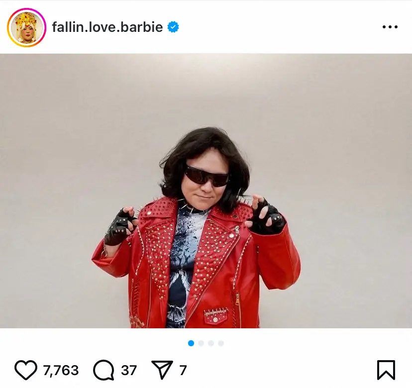 バービーは「イッテQの温泉同好会でToshIさんになったよ」と書き出し、13日放送の日本テレビ「世界の果てまでイッテQ!2時間スペシャル」(日曜後7・00)でのオフショットを公開。ミディアムヘアのかつらにサングラス、赤いレザージャケットや手袋をまとい、「X JAPAN」のボーカルToshIになりきった姿を披露した。