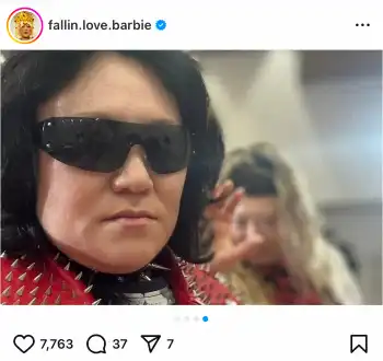 お笑いコンビ「フォーリンラブ」バービー(41)が15日、自身のインスタグラムを更新。大物ミュージシャンのコスプレ姿を披露した。