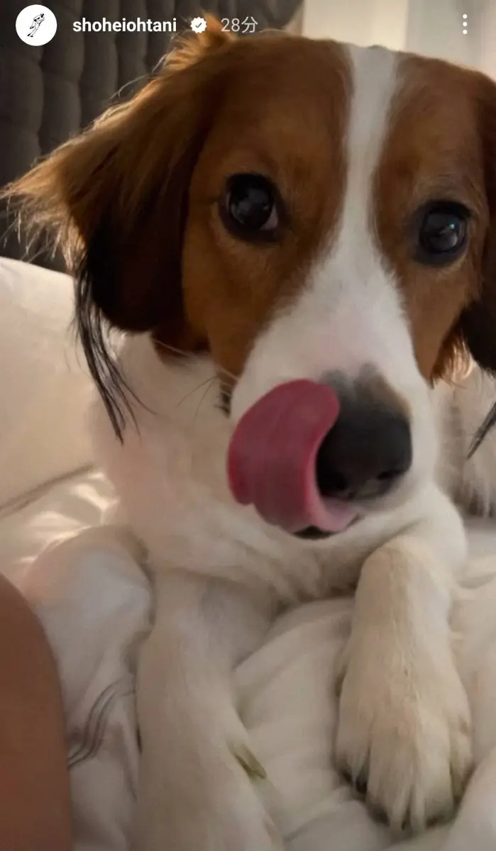 試合後、大谷は自身のインスタグラムを更新。ストーリーズ機能で愛犬デコピンにご飯をあげる動画を公開した。動画では大谷と思われる人物がデコピンに次々とご飯を与え、デコピンがうれしそうにガリガリとそしゃく音を立てながら食べる様子が映されている。