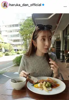 超名家出身女優「そろそろ衣替えかしら」 春コーデでテラス席でランチ満喫ショット 夫はプロバスケ選手