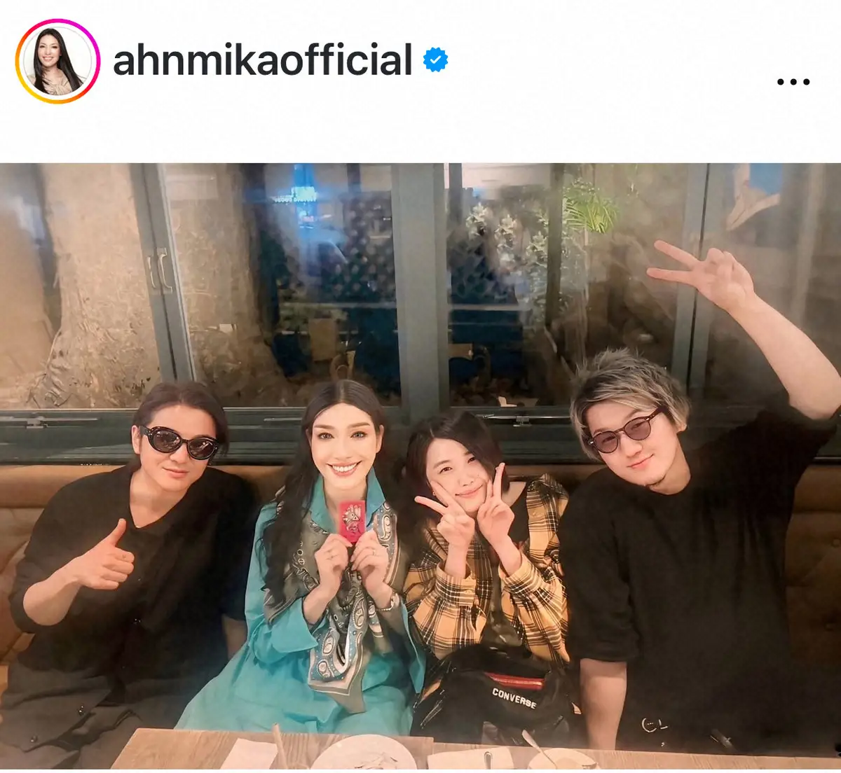 モデルでタレントのアンミカ(53)が16日、自身のインスタグラムを更新。同じ歳の超大物アーティストらとの「ティータイム」ショットを披露した。