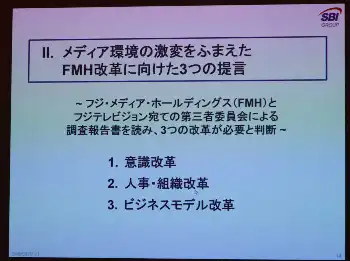 北尾氏はフジ・メディアHDの経営改善に向けて、「3つの改革が必要」と話した。
