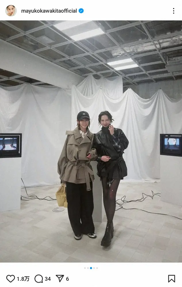 モデルでタレントの河北麻友子(33)が17日までに、自身のインスタグラムを更新。人気モデルとの2ショット写真を披露した。