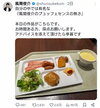 俳優の風間俊介(41)が18日までに自身のX(旧ツイッター)を更新。“ビュッフェセンスのなさ”を披露し、話題となっている。