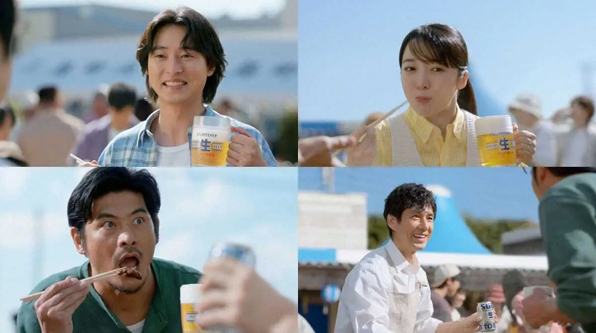 俳優の山崎賢人(30)、上白石萌音(27)、坂口憲二(49)、西島秀俊(54)が、きょう21日から全国で順次放送される「サントリー生ビール」の新CM「生奉行」編に出演する。