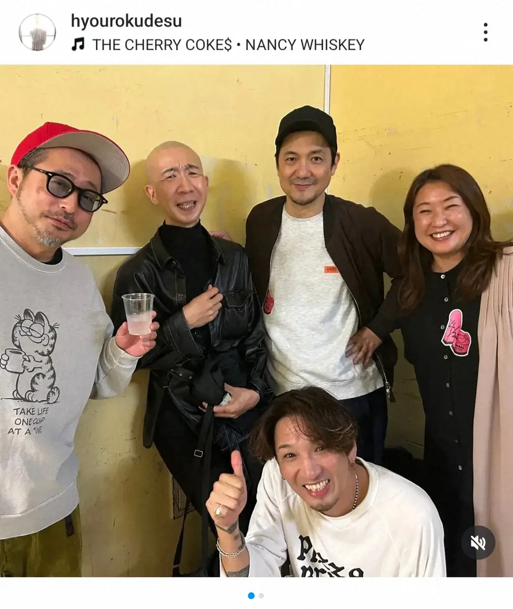 ひょうろくは「チェリコさんのツアー最終日見に行かせて頂きました」と書き出し、全身ブラックで統一された私服姿で6人組バンド「The cherry coke$(ザ・チェリーコークス)」のメンバーと映る一枚を披露。