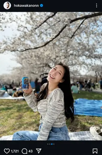 気象予報士でタレントの穂川果音(39)が21日までに自身のインスタグラムを更新。「ビールの広告風」お花見姿を公開した。