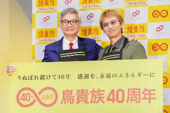 笑顔を見せる大倉忠司代表取締役社長CEO(左)と大倉忠義(撮影・西尾 大助) Photo by スポニチ 「SUPER EIGHT」大倉忠義が「鳥貴族」創業者の父・大倉忠司氏と40周年企… ギャラリーで見る この記事のフォト 2025年04月22日の画像一覧 もっと見る 2025年04月22日の画像をもっと見る